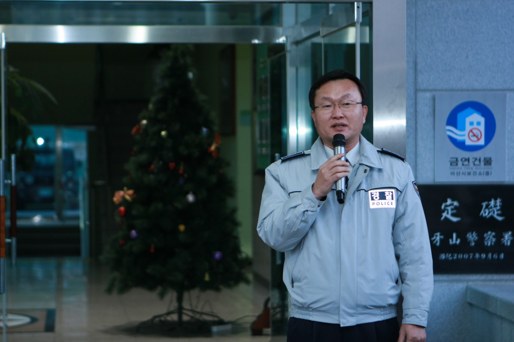 아산시 기독교연합회 주최로 아산 경찰서에서 성탄츄리 점등식이 있었습니다. 담임목사님을 비롯하여 아산시 여러 목사님들과 또한 아산 경찰서 서장님, 그리고 경찰서 모든 직원분들과 예배를 드리고 점등식을 하였습니다.